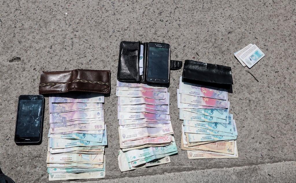 Dinero y documentación incautada a los delincuentes por la Policía de la Ciudad.
