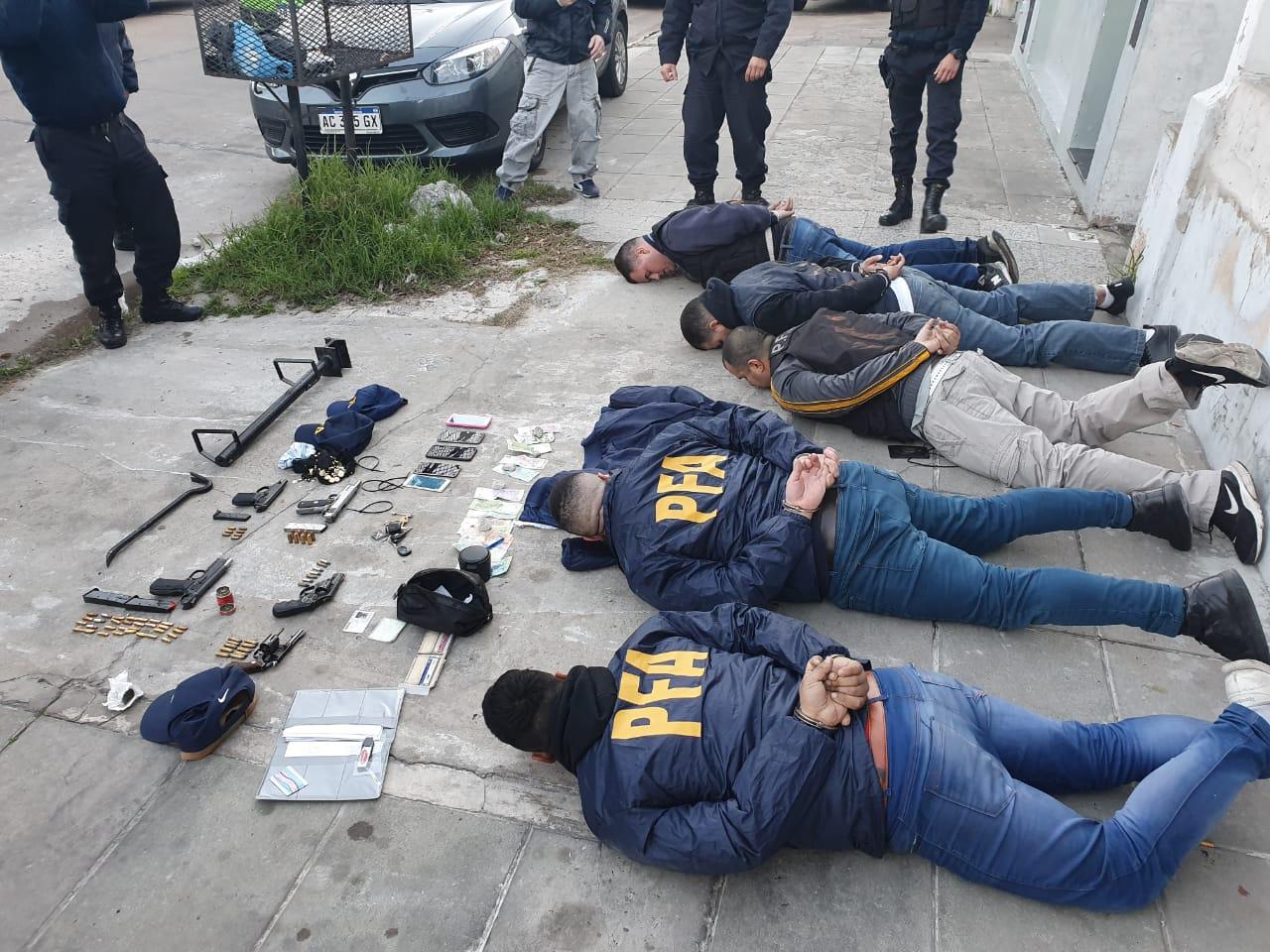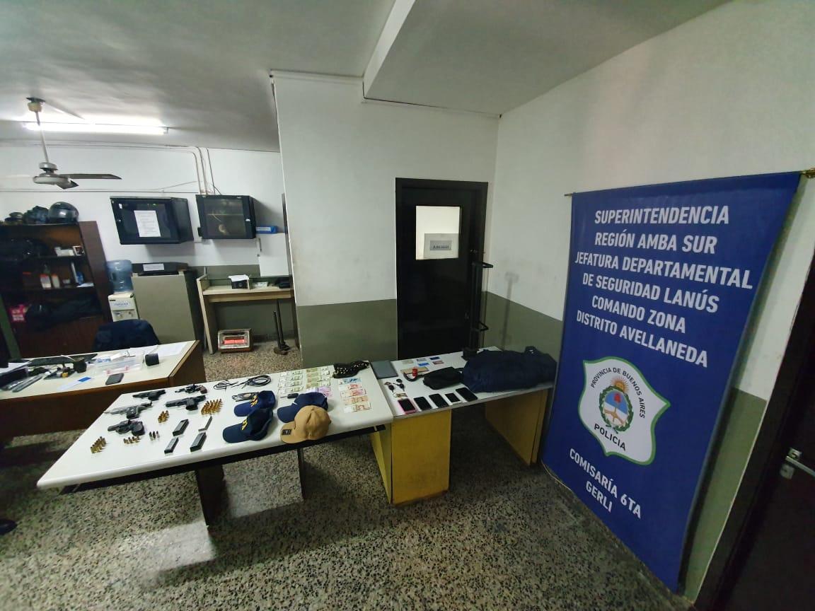 Producto del operativo, los oficiales de la policía provincial secuestraron cinco armas de fuego (una pistola calibre 9 mm, otra calibre 11,25, otra 380 y dos revólveres calibres 32 y 38), dos gorras color azul similares a las de la policía, un porta credencial con inscripciones de la PFA, cinco precintos, cinco celulares, una barreta y una brecha de hierro.