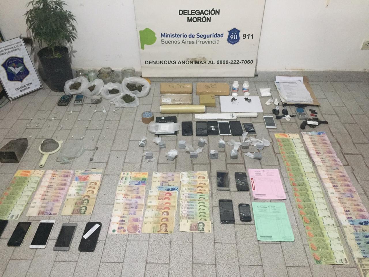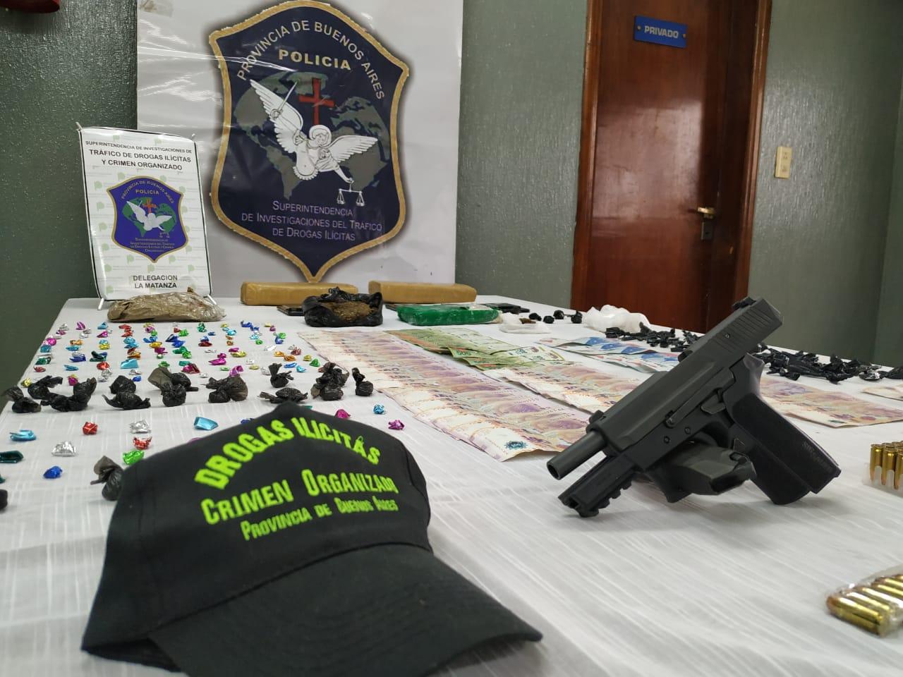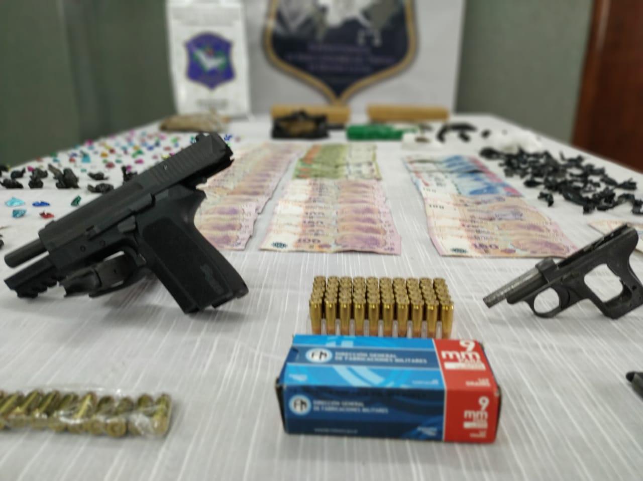 En total fueron tres las personas detenidas, entre ellas el líder de la estructura criminal, en cuyo poder se decomisó 2,213 gramos de marihuana y 1,167 de cocaína. La Policía también secuestró dos pistolas, municiones, dinero en efectivo y teléfonos celulares, entre otros elementos de interés para la causa.