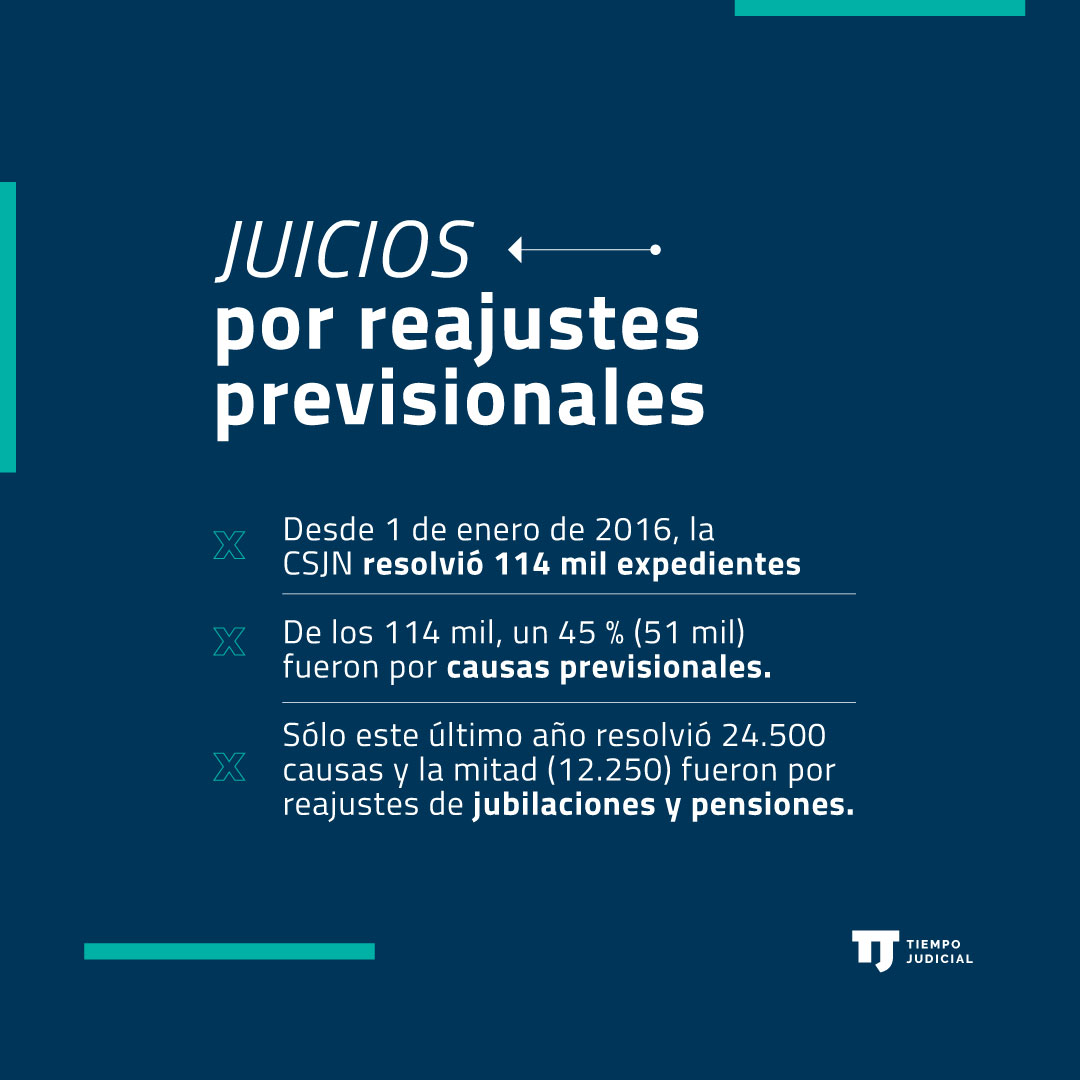 "Esta tendencia se repite año a año. Desde el 1 de enero de 2016 hasta hoy, la Corte resolvió 114.565 causas a través del dictado de 51.783 sentencias. De esas causas, 51.345 (45%) fueron previsionales", se indicó desde el Máximo Tribunal de Justicia a Tiempo Judicial. Hasta octubre, la Anses pagó 45.710 juicios con sentencia firme, según el informe del jefe de Gabinete de la Nación, Juan Manzur, cuando acudió al Congreso.