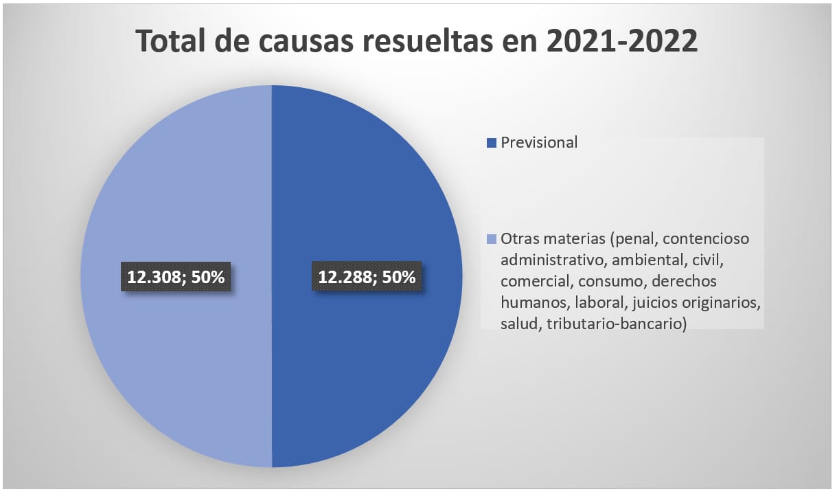 La Corte quiere desagotar la gran cantidad de expedientes previsionales que le llegan cada año, sobre casos en los que ya dictó sentencias que sirven de jurisprudencia. La Corte resolvió, entre 2021 y 2022, 24.596 causas. La mitad, 12.288 expedientes, corresponden a temas previsionales: jubilaciones y pensiones.