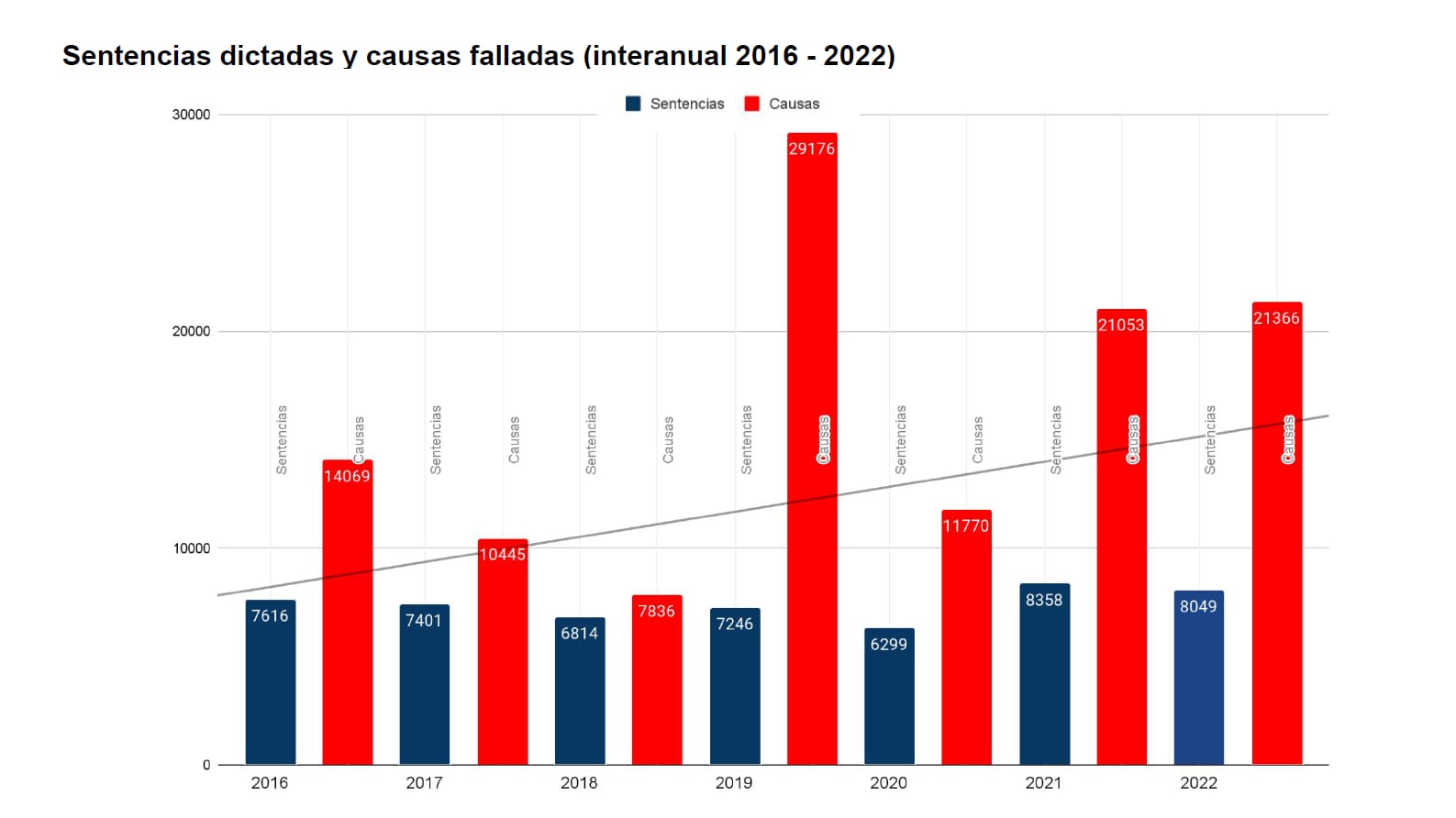 En el desglose del acumulado interanual 2016-2022, la Corte dictó 8358 fallos y resolvió 21.053 causas en 2021. En 2020 fueron 6299 y 11.770, respectivamente. En 2019, 7246 y 29.176; en 2018, 6814 y 7836; en el 2017, 7401 y 10.445, y en el 2016, 7616 y 14.069. En el último acuerdo del año, el 21 de diciembre, la Corte dictó 273 sentencias y resolvió 524 causas.