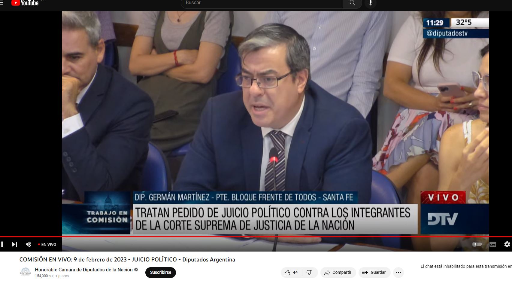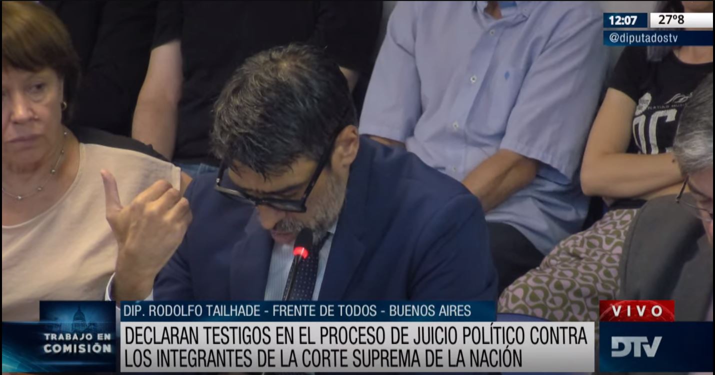 El diputado López expuso un informe del bloque de la oposición que se incorporó al expediente del pedido de juicio político en el cual detalló que es contrario a la Constitución Nacional como “un avasallamiento institucional y a derechos constitucionales” el pedido de las llamadas telefónicas de los magistrados y que necesita “una correspondiente intervención de un juez para aprobar dicho pedido”. Gaillard confirmó que se notificará de los pedidos de juicio político vía oficio y que se pedirá la intervención de un magistrado que las autorice. Luego, todos los diputados se levantaron de la comisión lo cual generó la respuesta del presidente del bloque del FDT, Germán Martínez, quien manifestó que “cuando no hay argumentos, lo mejor es levantarse e irse”.