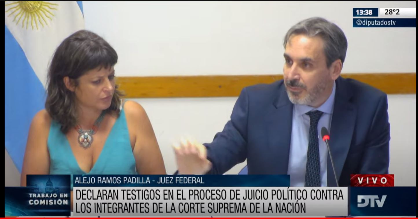 Una pregunta de la diputada Siley sobre la urgencia del archivo de un expediente, Ramos Padilla dijo que "se encontraba subroganzdo los 4 juzgados federales de La Plata y que hay una regla de respeto hacia los otros jueces de no invadir sus asuntos a resolver salvo que exista una situación de urgencia para resolver pero dijo que el archivo no es eso. Y no lo digo por el juez Ramos que demuestran su razonablidad en muchos casos per si una cadena de favores en Comodoro Py y que hay que revisarlo en profundidad".