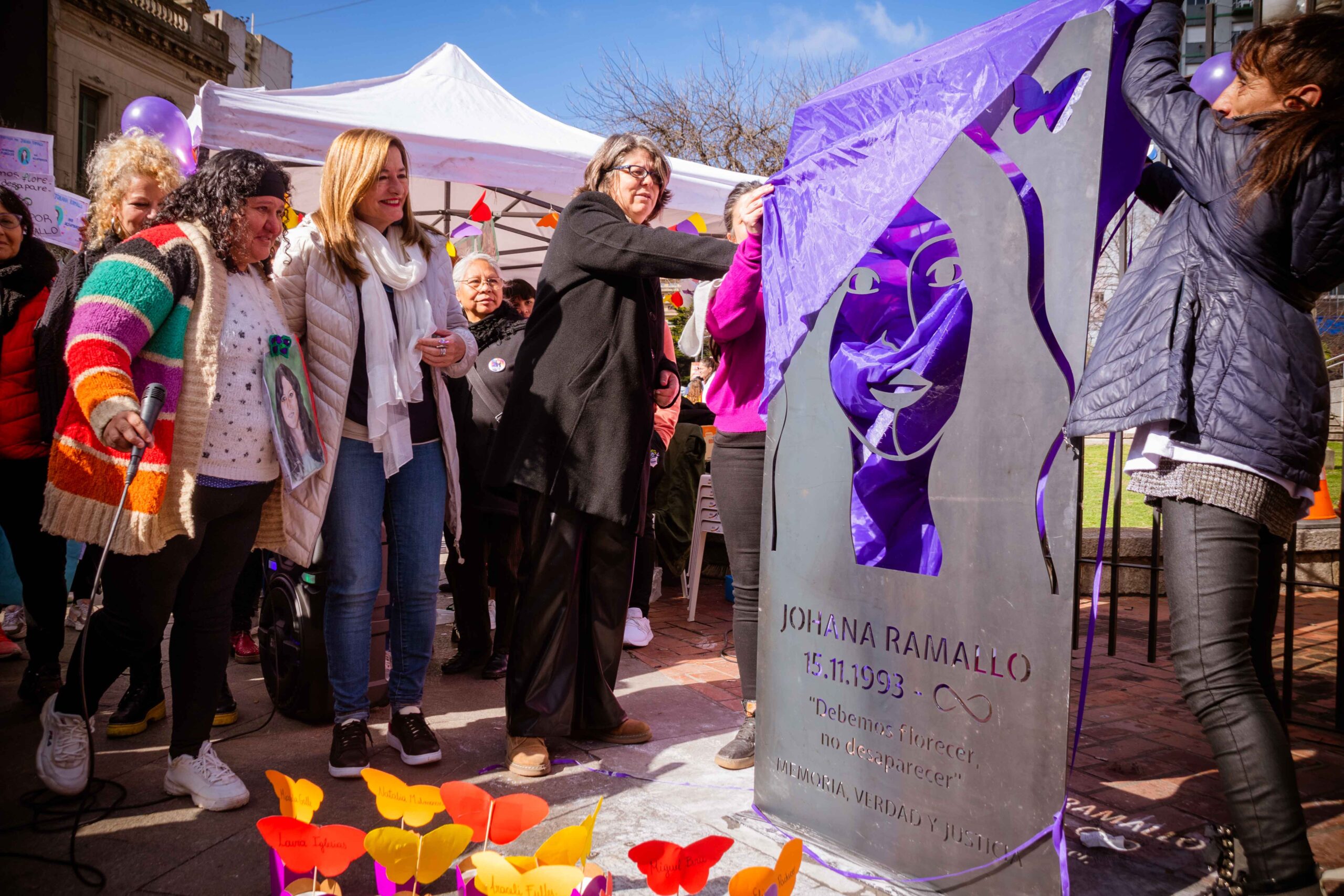 Luego se descubrió la imagen de Johana, que quedará emplazada en la esquina de los Tribunales Federales de La Plata, con el objetivo de interpelar al Poder Judicial y de sensibilizar a la comunidad respecto a las violencias por razones de género más extremas. Esta señalización forma parte de las acciones del programa ministerial “Mariposas”, destinado a la construcción de la memoria colectiva sobre las víctimas de femicidios, travesticidios y transfemicidios ocurridos en la provincia de Buenos Aires.
