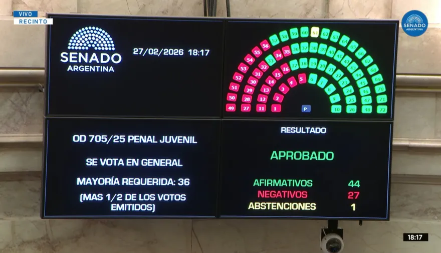 Por ello, el Senado debió votar de nuevo el texto legislativo, este viernes 27 de febrero. La sesión continuó luego de la aprobación del nuevo Régimen Penal Juvenil, que baja la edad de imputabilidad de los 16 a los 14 años. El triunfo del oficialismo con 44 votos en favor, 27 en contra y una abstención, marca la nueva agenda parlamentaria.